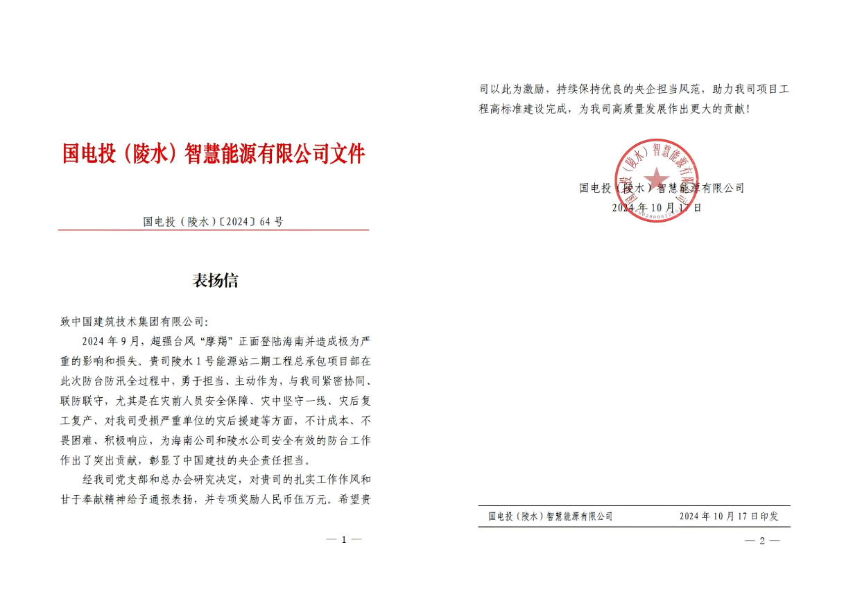 在9月“摩羯”臺(tái)風(fēng)自然災(zāi)害突襲下,項(xiàng)目部積極擔(dān)當(dāng)、善作善為。在保護(hù)好所有參建人員人身安全前提下,全力維護(hù)甲方既有財(cái)產(chǎn)和施工現(xiàn)場(chǎng)不受損失,并在災(zāi)后第一時(shí)間,抽調(diào)項(xiàng)目主力,參與社會(huì)救援。此舉深受當(dāng)?shù)卣徒ㄔO(shè)單位贊許,業(yè)主給予通報(bào)表彰和現(xiàn)金獎(jiǎng)勵(lì)。
