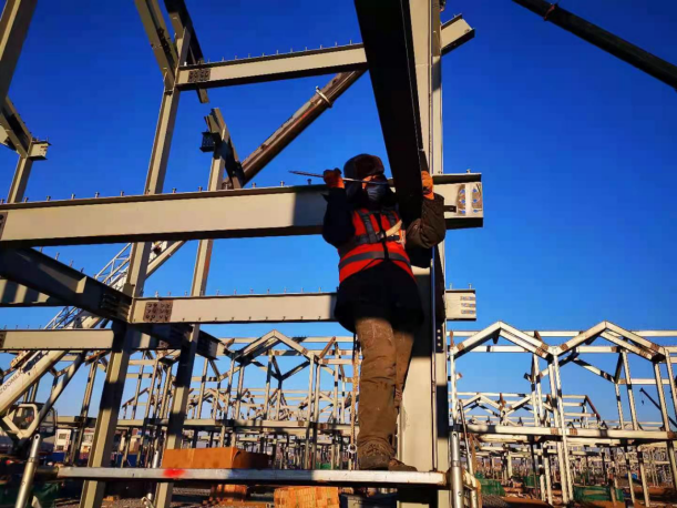 為確保工期,天津鋼結(jié)構(gòu)分公司負(fù)責(zé)人張衍雷以身作則,下基層,駐現(xiàn)場,第一時(shí)間解決遇到的困難和問題,確保重要工序24小時(shí)不停產(chǎn),為現(xiàn)場施工的有序進(jìn)行提供了良好保障。在氣溫零下26度的施工現(xiàn)場,施工管理人員和安裝作業(yè)人員40余人冒著凜冽寒風(fēng),克服冬季白晝時(shí)間短、冰天雪地安裝難以施展等諸多困難,穩(wěn)步推進(jìn)工程進(jìn)度,充分展現(xiàn)了鋼構(gòu)鐵軍能打硬仗、吃苦耐勞的良好精神風(fēng)貌。?