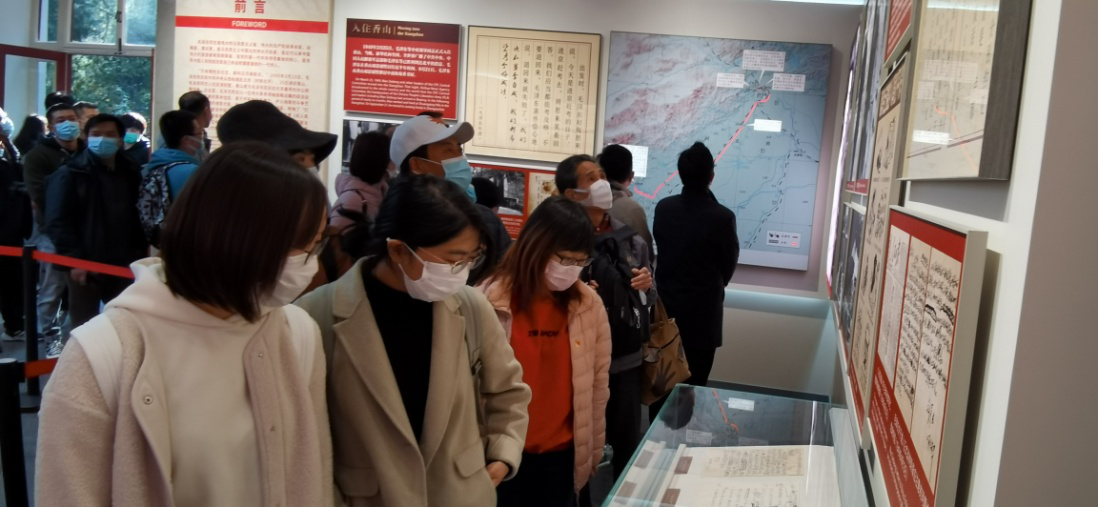 “毛澤東同志在香山”館,展示了“進(jìn)京趕考”、“進(jìn)駐香山”、“繼續(xù)指揮解放全中國”、“新中國籌建”等雙清別墅中發(fā)生的各大事件。黨員們俯身仔細(xì)查看著一張張珍貴的照片和文件資料,駐足觀看開國大典的影片片段,回顧當(dāng)年中共中央從西柏坡遷至香山后,在此指揮解放全中國、籌建新中國的點(diǎn)滴細(xì)節(jié),汲取砥礪前行的精神力量。