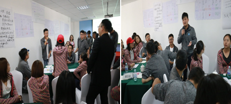 9月22日上午,在專業(yè)培訓(xùn)師的指導(dǎo)下,用貝爾賓團(tuán)隊(duì)角色理論測試每位員工的團(tuán)隊(duì)角色,結(jié)合該測試結(jié)果,進(jìn)行了一場充滿參與性、互動性、實(shí)戰(zhàn)性、競爭性的沙盤模擬訓(xùn)練。新員工們分組抽簽決定各自的所處的地形情況及資源狀況,通過小組合作產(chǎn)出產(chǎn)品并到統(tǒng)一的市場交易獲得效益,通過效益的多少等多重指標(biāo)衡量經(jīng)營的整體狀況。培訓(xùn)中,小組成員充分地展示出了當(dāng)代年輕人開闊的思維方式,會場熱鬧紛紛。他們思維活躍、分工有序,在充分分析內(nèi)外形勢的前提下,有效經(jīng)營,各小組均獲得了十分可觀的經(jīng)營效果,得到了培訓(xùn)團(tuán)隊(duì)的一致好評,最后每個小組的精彩自我點(diǎn)評再次將培訓(xùn)推向高潮。會后大家意猶未盡,午餐時分依然在探討思路和方法。