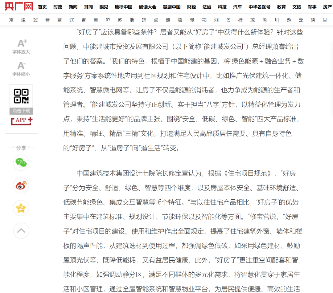 能建城發(fā)總經(jīng)理蕭睿在報道中指出,企業(yè)的“好房子”實踐根植于中國能建特色,核心是將“綠色能源+融合業(yè)務(wù)+數(shù)字服務(wù)”方案系統(tǒng)性植入社區(qū)規(guī)劃與住宅設(shè)計: