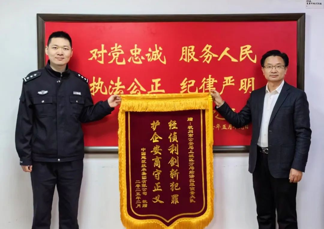 2月27日,中國(guó)建技黨委副書(shū)記、總經(jīng)理余湘北,黨委副書(shū)記、紀(jì)委書(shū)記李小陽(yáng),法務(wù)楊建旭一行專(zhuān)程赴杭州市上城區(qū)經(jīng)濟(jì)犯罪偵查大隊(duì),向辦案民警代表送錦旗,對(duì)經(jīng)偵大隊(duì)在偵辦中國(guó)建技原浙江分公司總經(jīng)理系列重大犯罪案件中展現(xiàn)的專(zhuān)業(yè)能力表示由衷欽佩,對(duì)其高效行動(dòng)致以誠(chéng)摯謝意。