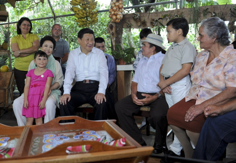 2013年6月3日,習(xí)近平和夫人彭麗媛走訪哥斯達(dá)黎加埃雷迪亞省圣多明哥小鎮(zhèn)農(nóng)戶薩莫拉一家,與薩莫拉一家人親切交流。