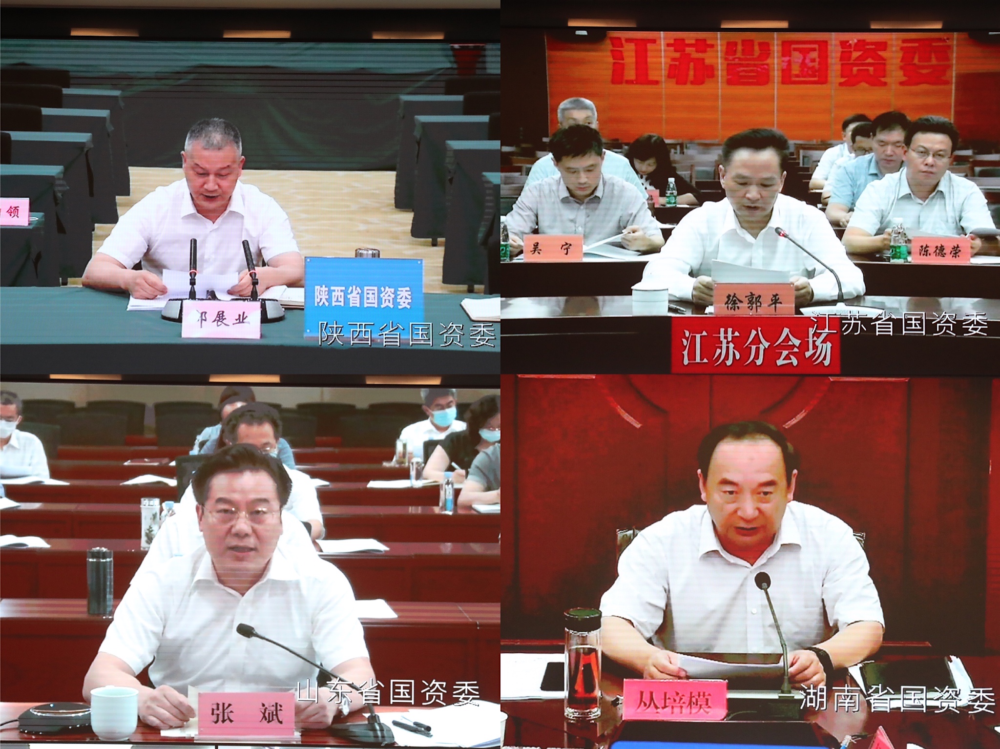 會上,陜西、江蘇、山東、湖南等4省國資委主要負責同志通過視頻會議系統(tǒng)作了交流發(fā)言。國務院國資委總會計師、副秘書長,駐委紀檢監(jiān)察組,各廳局、直屬事業(yè)單位負責同志在主會場,各省、自治區(qū)、直轄市及計劃單列市和新疆生產(chǎn)建設兵團國資委負責同志在當?shù)胤謺鰠⒓訒h。