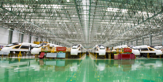 ▲中車長客“復(fù)興號(hào)”中國標(biāo)準(zhǔn)動(dòng)車組裝配現(xiàn)場(chǎng)