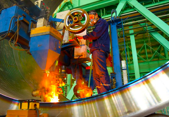 ▲中國一重大連核電石化公司石化筒節(jié)生產(chǎn)場(chǎng)景