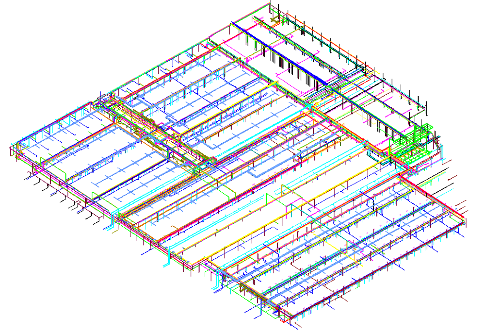 BIM技術(shù):在項(xiàng)目施工前,利用BIM技術(shù)提前對廠房的各系統(tǒng)路由進(jìn)行了優(yōu)化、排布,這樣不僅在工期上節(jié)約了時(shí)間,在經(jīng)濟(jì)方面更起到了降本增效的良好作用。通過BIM技術(shù)應(yīng)用,施工人員結(jié)合BIM模型查看圖紙,能夠更形象地理解圖紙?jiān)O(shè)計(jì)意圖,也能及時(shí)發(fā)現(xiàn)設(shè)計(jì)圖紙中存在的問題,避免在施工過程中出現(xiàn)返工現(xiàn)象,有效提升了項(xiàng)目履約水平。永臨結(jié)合技術(shù):項(xiàng)目臨電、照明采用永臨結(jié)合技術(shù),通過將廠房臨電系統(tǒng)與照明系統(tǒng)結(jié)合安裝,避免了傳統(tǒng)照明系統(tǒng)需要再次布線的問題,減少了施工時(shí)間和成本,可以避免臨時(shí)照明器材的頻繁更換和維護(hù),節(jié)約人力成本和材料成本,從而實(shí)現(xiàn)臨電永久化和照明效果的提升。機(jī)電消聲減振綜合施工技術(shù):項(xiàng)目通過采用機(jī)電消聲減震綜合施工技術(shù),有效地降低機(jī)電設(shè)備的噪聲和振動,提高設(shè)備的使用效率和安全性。在機(jī)電設(shè)備的安裝和維護(hù)過程中,綜合運(yùn)用消聲技術(shù)、減震技術(shù)和綜合施工技術(shù)來降低噪聲和振動。