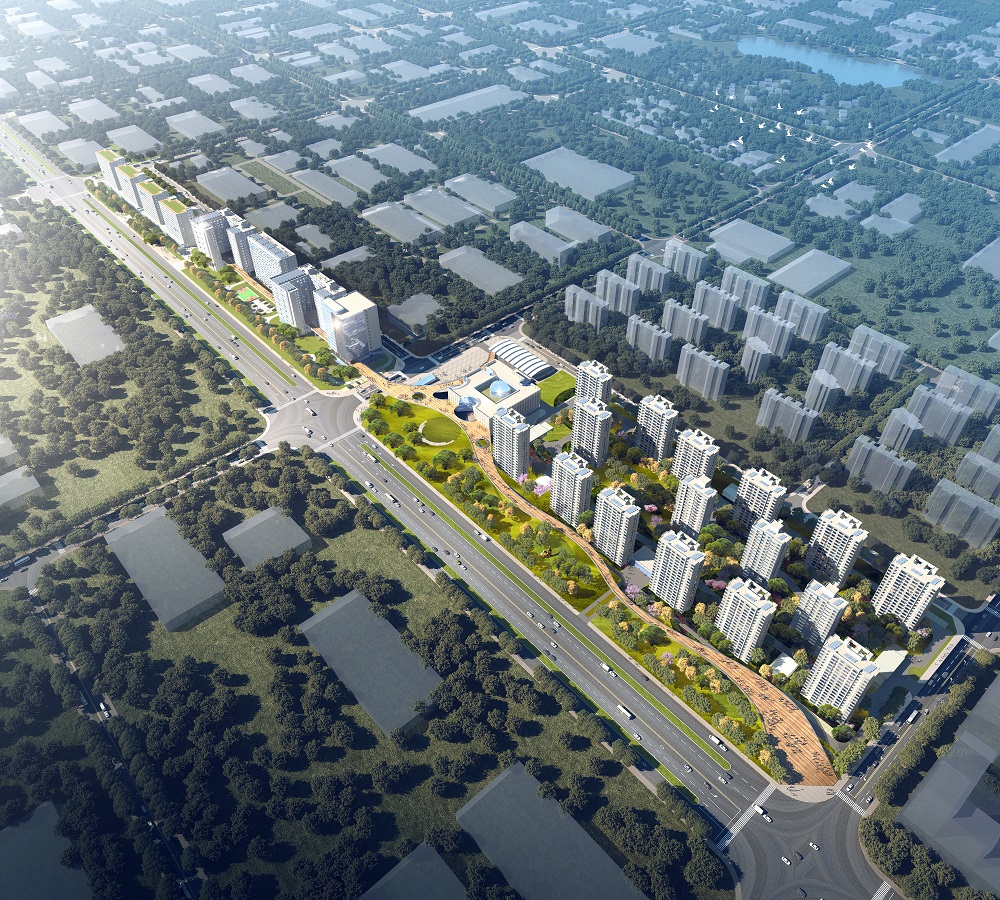 江山市特色生態(tài)產(chǎn)業(yè)平臺(tái)城南鄰里中心項(xiàng)目位于江山市城南工業(yè)園核心位置,沿蓮華山大道北側(cè)展開,項(xiàng)目分為東、西兩片,包括產(chǎn)業(yè)鄰里中心、職工公寓、人才社區(qū)和配套公交首末站等四大功能板塊??傆玫孛娣e約10萬㎡,總建筑面積約27萬㎡。 經(jīng)公開招標(biāo)和多輪比選,我院最終取得規(guī)劃和建筑方案設(shè)計(jì)權(quán)。