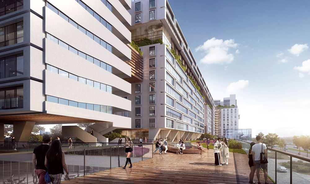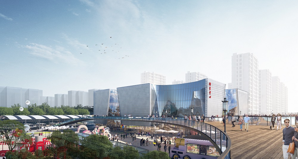 活力天街場景——構(gòu)思利用300余米長的架空平臺(tái)加上400余米長起伏的景觀步道,形成總長800米、貫穿整個(gè)基地的帶狀連續(xù)步行空間(天街),避開喧囂,開放視野,一路通達(dá),體驗(yàn)活力。