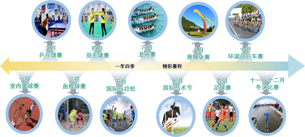 2.4.運動賽事:結(jié)合國家加快發(fā)展健身休閑產(chǎn)業(yè)的指導(dǎo)意見、體育運動名錄及小鎮(zhèn)建設(shè),打造灰湯體育小鎮(zhèn),布局如足球、馬術(shù)、自行車(東鶩山環(huán)道及環(huán)湖自行車道)、環(huán)湖田徑馬拉松、游泳、賽艇、龍舟賽、擊劍、射箭、射擊(室內(nèi))、太極、廣場舞、攀巖、競走等運動項目,結(jié)合各已開發(fā)項目布置全民休閑運動項目,打造湖南省賽事運動基地。