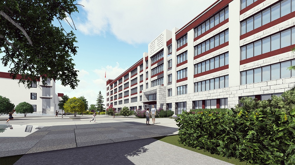 校園的原創(chuàng)形態(tài)以文化為底蘊,以城市設計及周邊城市肌理為藍本,以功能為核心,以軸線為重點,方正有秩,主次分明。同時受邊界、河流影響引入自然導向構(gòu)圖,以此形成整個校園的規(guī)劃結(jié)構(gòu)。這樣的結(jié)構(gòu),形成了張與弛、疏與密、剛與柔并存,形式和空間相呼應的統(tǒng)一體,產(chǎn)生了校園的形式感與場所感,體現(xiàn)了井然有序、和諧天成的人文精神,并通過規(guī)劃結(jié)構(gòu)的默契匹配使之成為被社會所認同的城市標志: