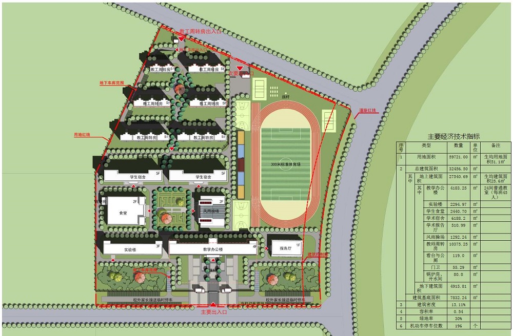 ???本項目用地位于日喀則市經(jīng)濟開發(fā)區(qū),辦學規(guī)模為24班的小學,包括教學樓、實驗樓、食堂、風雨操場、宿舍樓等建筑。規(guī)劃建設用地為59721㎡,建筑總面積為32456.5㎡,其中地上建筑面積27540.69㎡,地下建筑面積4915.81㎡。建筑密度13.11%,容積率0.54,綠地率30%,機動車停車位數(shù)196個。南側(cè)、東側(cè)、北側(cè)為規(guī)劃道路,西側(cè)緊鄰規(guī)劃曲布幼兒園和園丁苑。