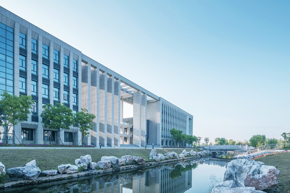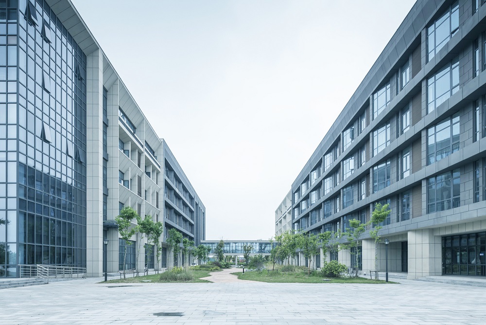 建筑設計秉承傳承與創(chuàng)新的核心理念。研究高等教育起源校園規(guī)劃手法與東西方校園開放空間策略,奠定校園核心區(qū)域教學區(qū)、實訓區(qū)基調。教學區(qū)嚴謹莊重,打造軸線分明的共享空間,視為傳承;實訓區(qū)流動拓展,打造平等、自由、交流、學習的氛圍,視為創(chuàng)新。結合江蘇泰州當地建筑顏色與現代校園色彩體系,體系校園的文化與嚴謹。